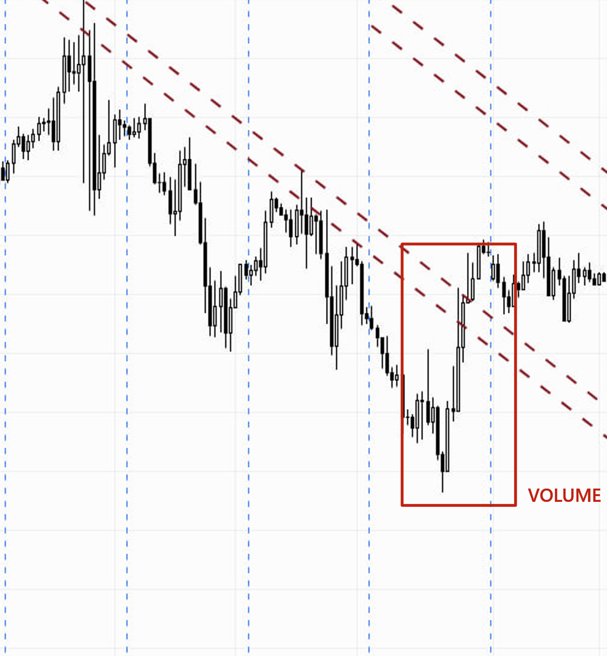 Итог: Участники наблюдая за торможением движения цены, на эмоциональном факторе закрывают свои покупки (либо выходят с рынка, либо переворачивают свои сделки на возврат цены к КУТ)