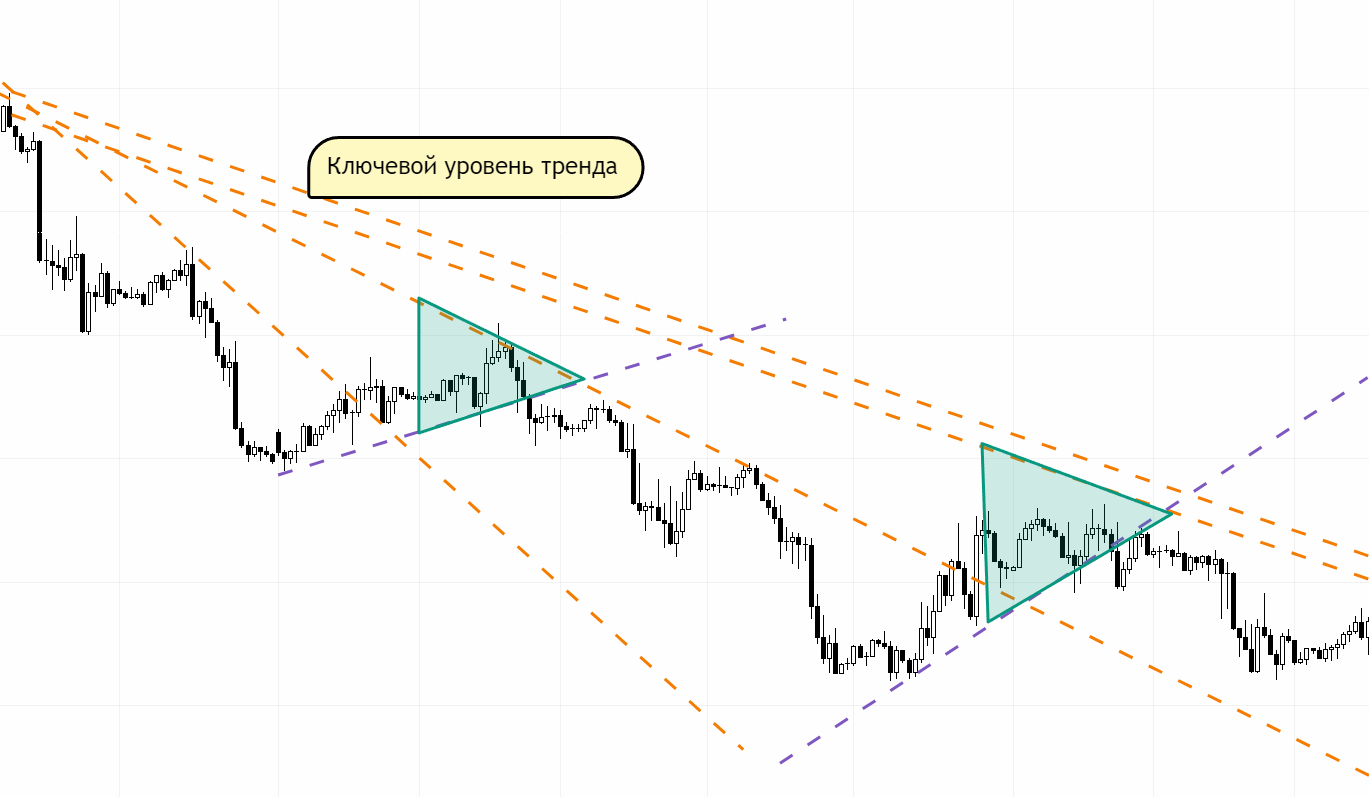 Следствие: пробой КУТ захлебывается, откатывает и уходит в локальную расторговку (перед уровнем, на уровне, за уровнем)