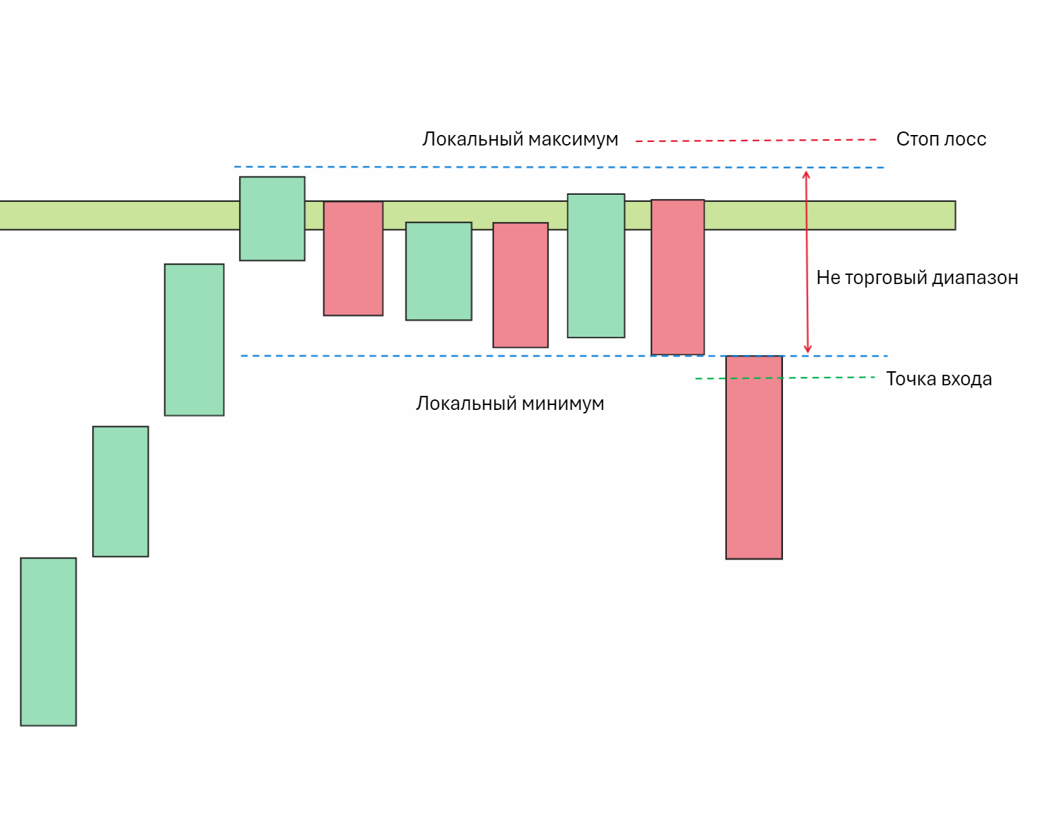 - По возможности искать точки входа после формирования свечи обновления минимума или максимума